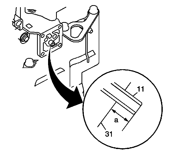 2. Measure from the top of the 8 x 53 mm fluid passage tube (11) to the machined surface of the transmission case (31). This is the installed height (a) of the fluid passage tube (11).