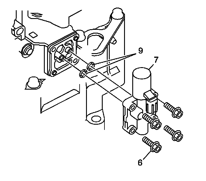 9. Install the 4 TCC pressure control solenoid valve M6 x 1.0 x 30 mm bolts (6).