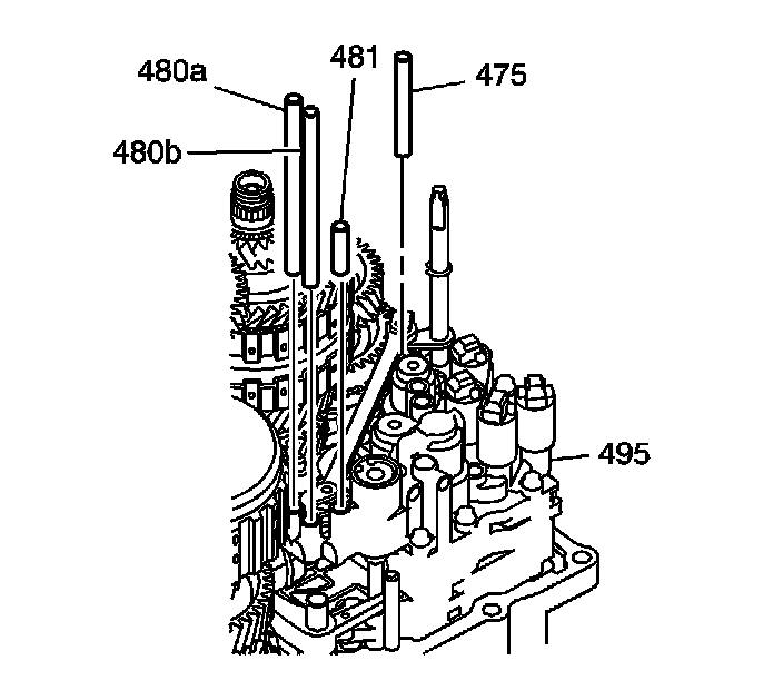 1. Remove the mainshaft lube fluid pipe (475) from the accumulator valve body (495).