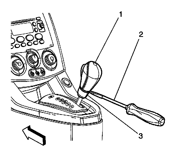1. Carefully insert a small flat bladed tool (2) between the trim ring (3) and the shift knob (1).