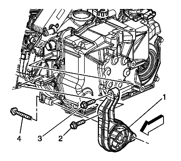 6. Remove the front transmission mount (1) from the vehicle.
