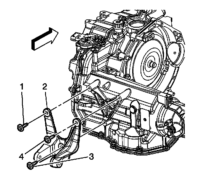 5. Remove the transmission mount bracket bolts (1, 3, 4).