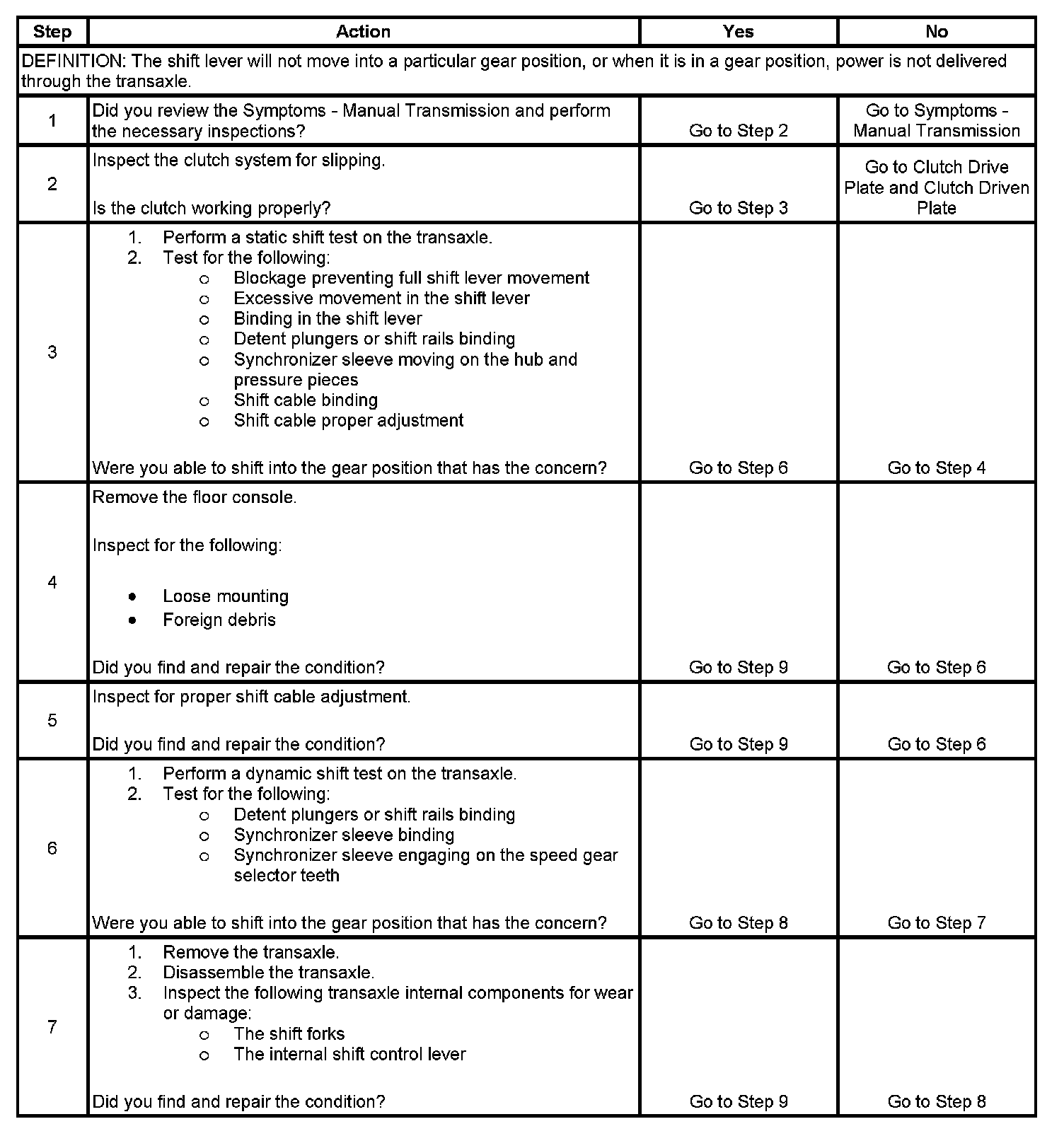 2. This step is to confirm that the clutch is not slipping. During certain conditions, the clutch may slip, and feel as though the transaxle is not in gear.