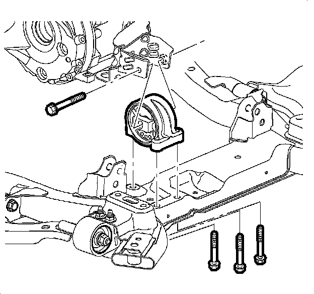 3. Remove the rear transmission mount through bolt.