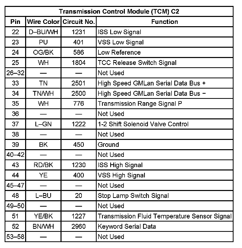 Transmission Control Module (TCM) C2:
