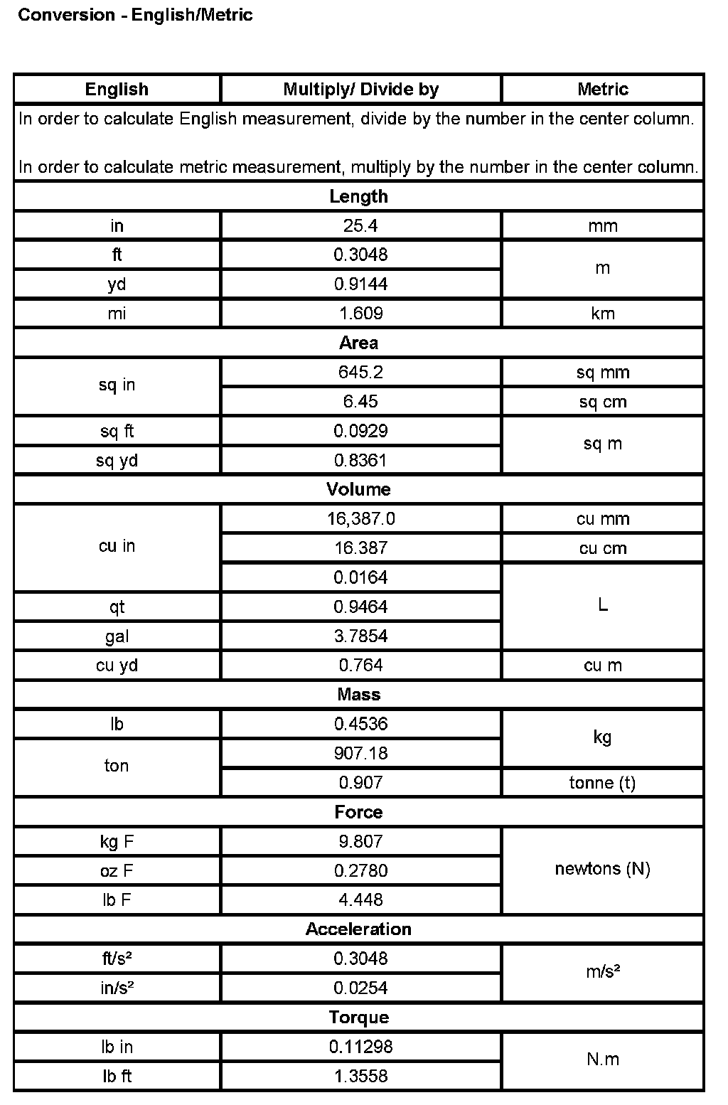 Conversion - English/Metric