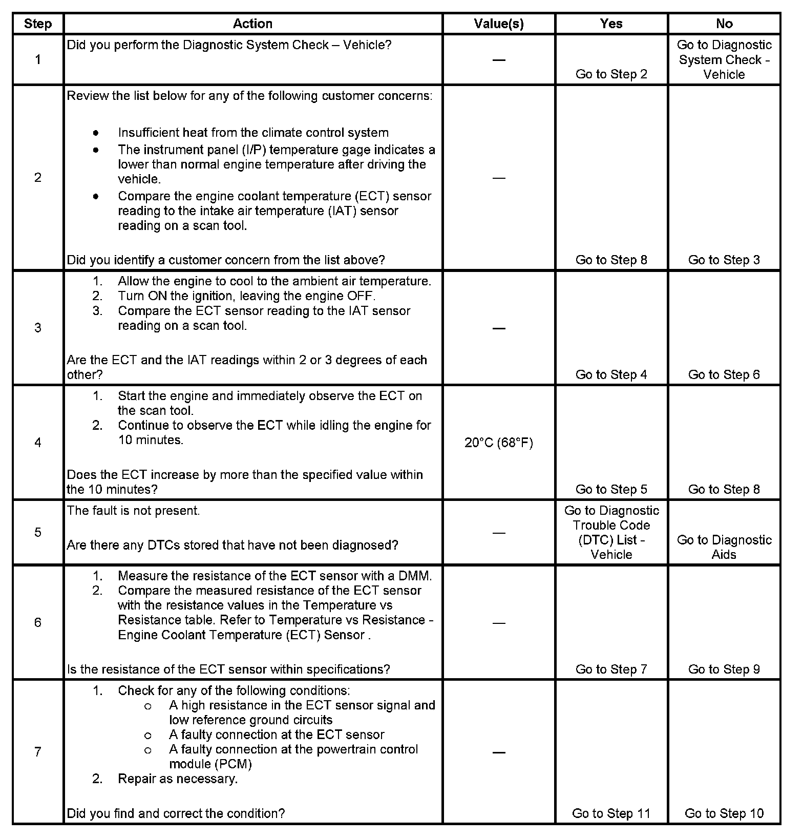 3. This step compares the ECT to the intake air temperature (IAT). This inspection is to be performed when the vehicle has reached the ambient room temperature. At that time both the surrounding air temperature and the engine coolant temperature are nearly equal. If the ECT sensor and circuit are OK, both sensors should indicate the same temperature.