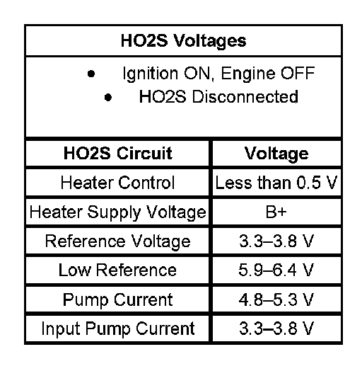 - The table illustrates the typical voltages for the HO2S circuits.