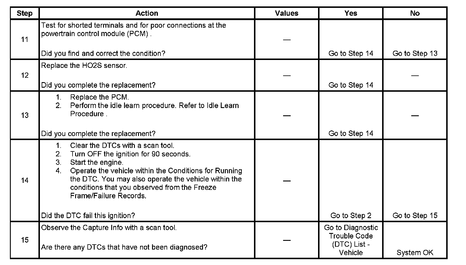 - A last test failed, or current DTC, clears when the diagnostic runs and does not fail.