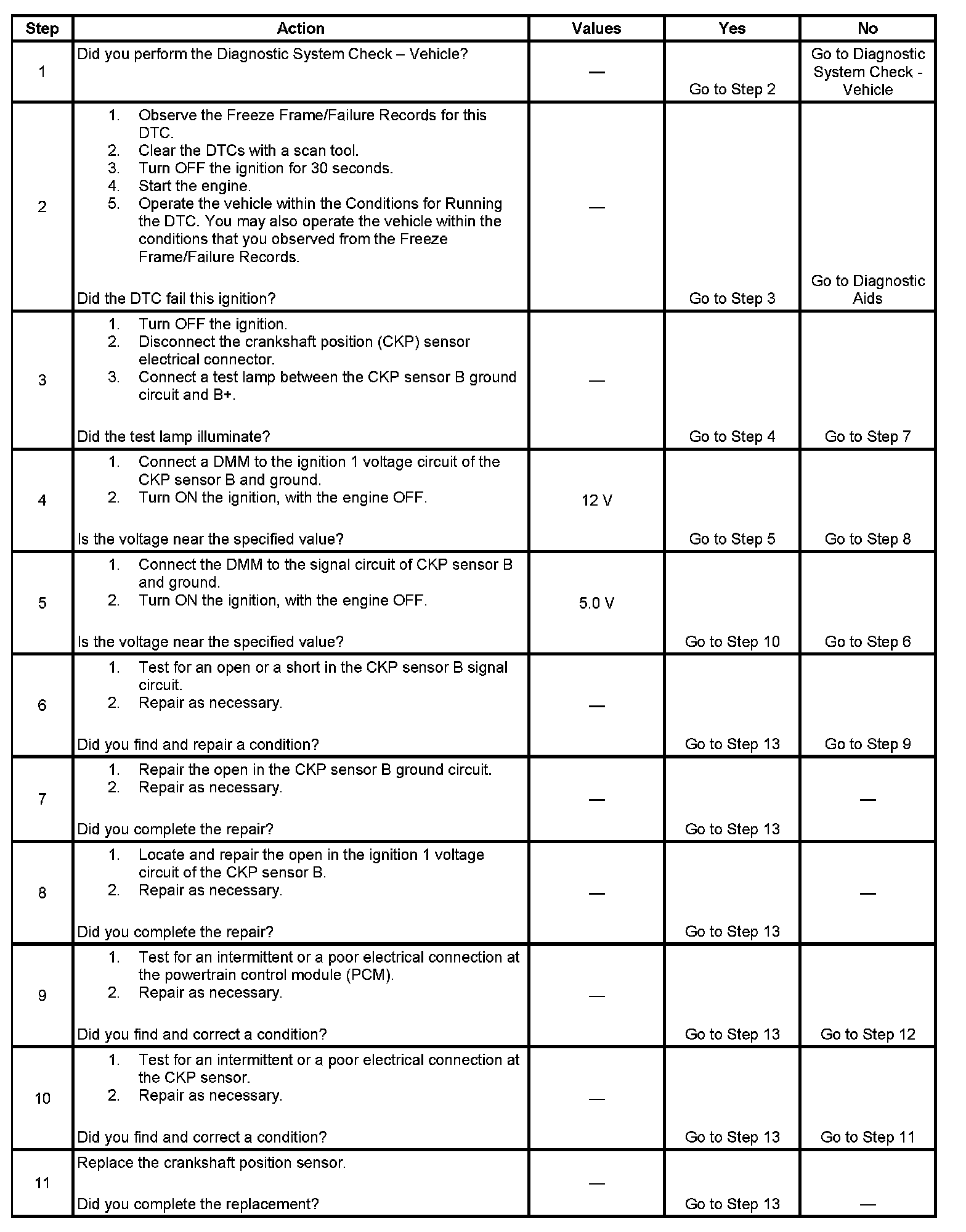 5. This step tests the CKP sensor input circuit.