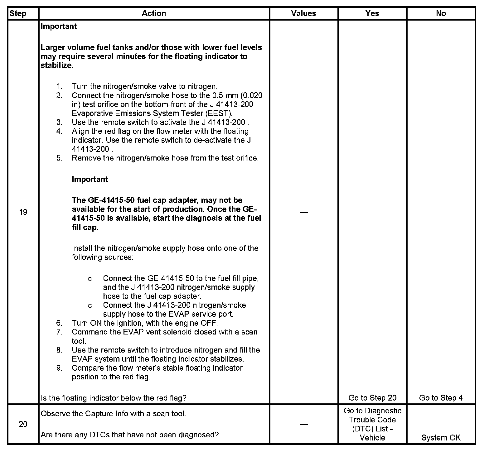 - To help locate intermittent leaks, use the J 41413-200 Evaporative Emissions System Tester (EEST) to introduce smoke into the EVAP system. Move all EVAP components while observing smoke with the J 41413-SPT High Intensity White Light. Introducing smoke in 15 second intervals will allow less pressure into the EVAP system. When the system is less pressurized, the smoke will sometimes escape in a more condensed manner.