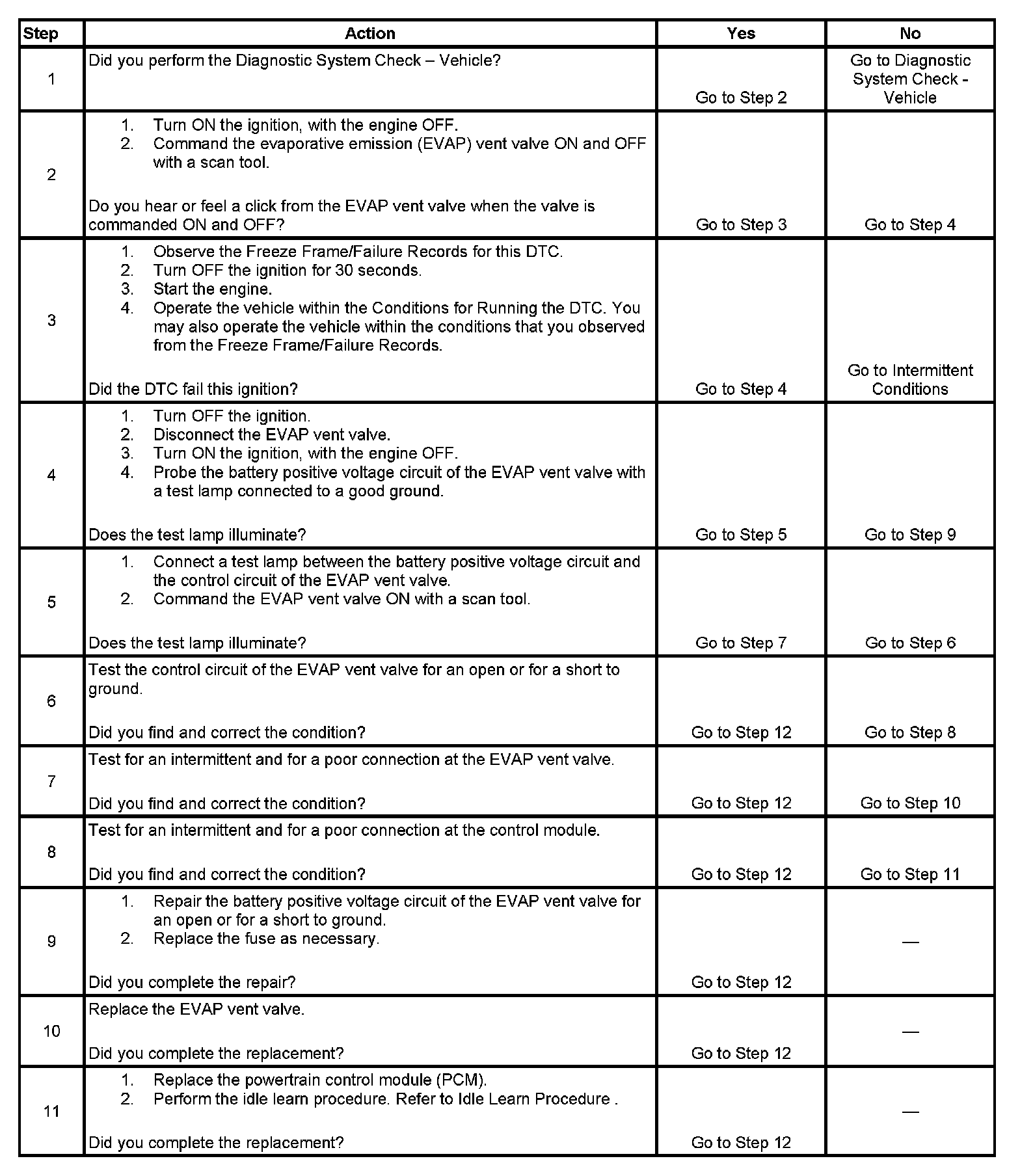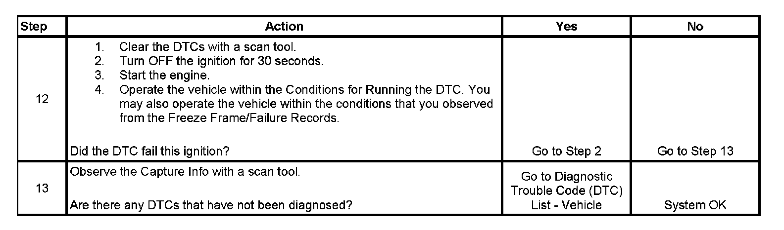 - A current DTC, Last Test Failed, clears when the diagnostic runs and passes.