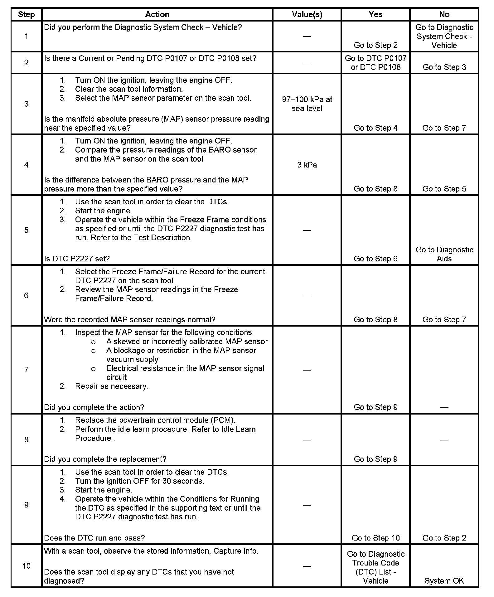 2. This step checks for a MAP sensor fault.