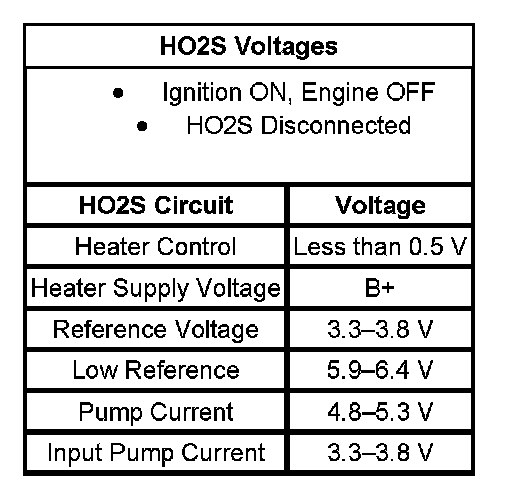 - The table illustrates the typical voltages for the HO2S circuits.