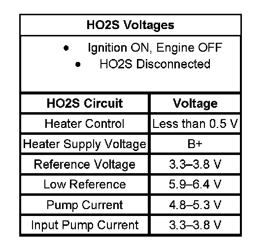 - The table illustrates the typical voltages for the HO2S circuits.