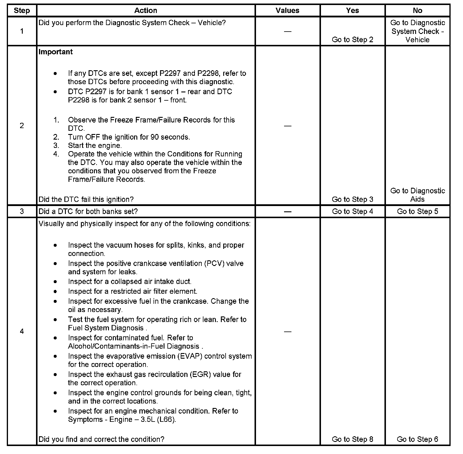 3. This step isolates the condition. If the DTC for only one bank sets, inspect and test for a condition that would affect only one bank of the engine.