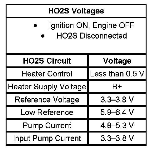 - The table illustrates the typical voltages for the HO2S circuits.