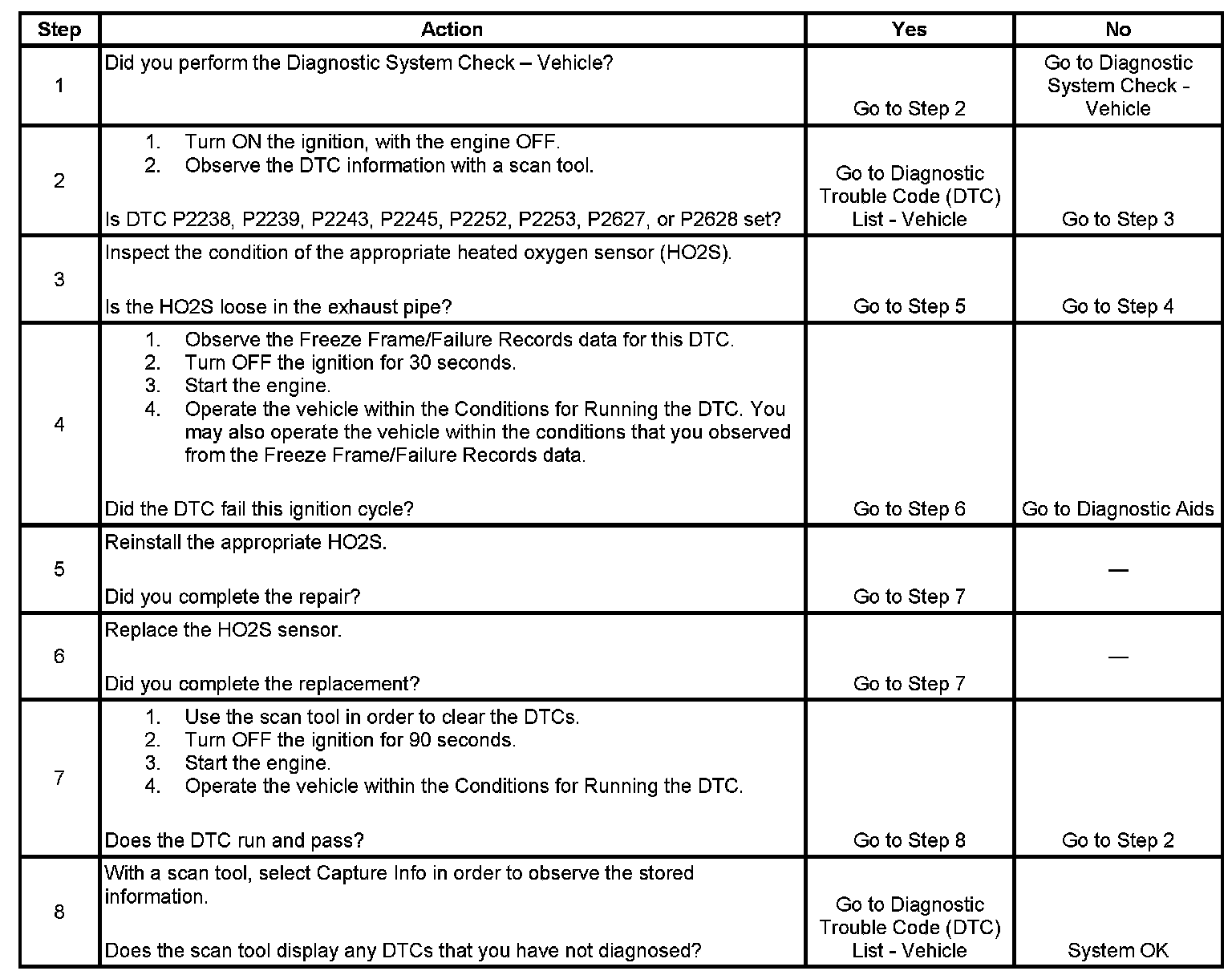 - DTCs P0030, P0135, P2238, P2239, P2243, P2245, P2252, P2253, P2627, and P2628 are not set.