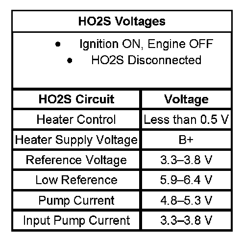 - The table illustrates the typical voltages for the HO2S circuits.