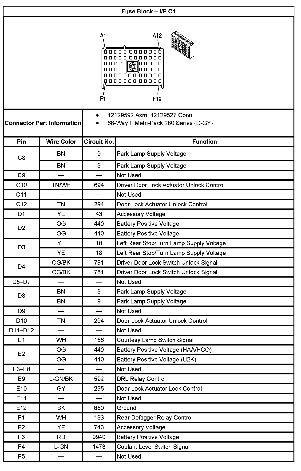 Fuse Block - I/P C1 (Part 3):