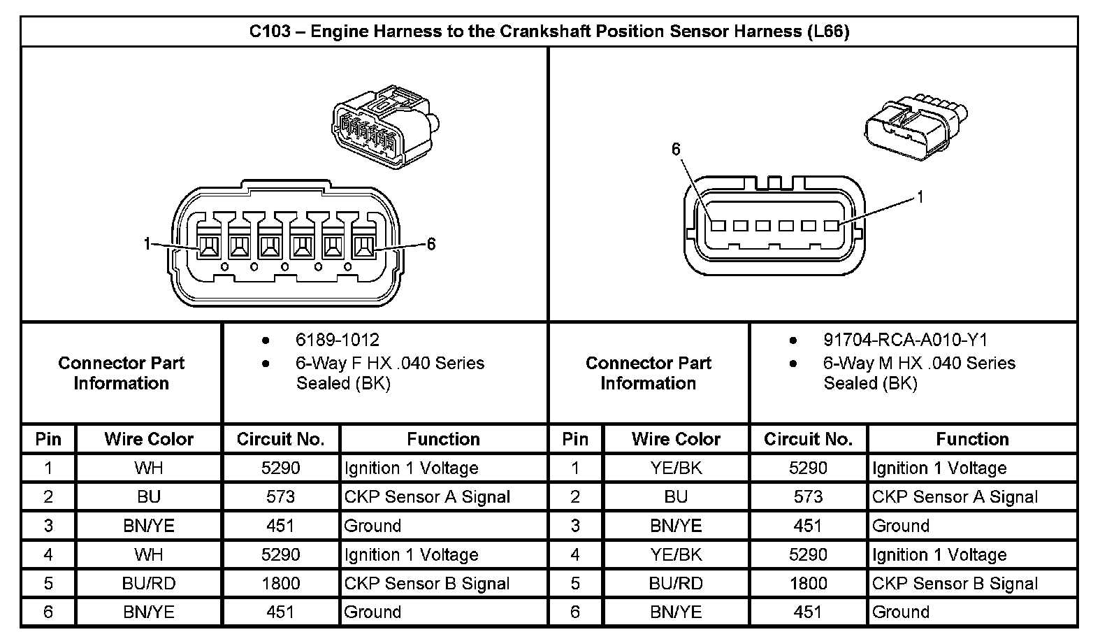 C103 - Engine Harness To The Crankshaft Position Sensor Harness: