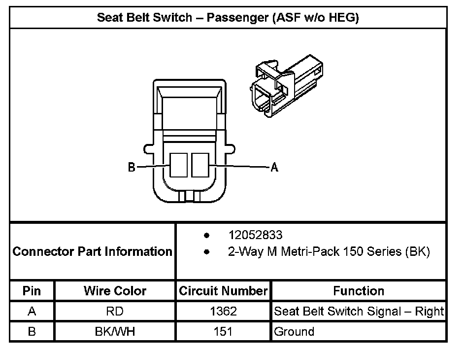 Seat Belt Switch - Passenger (With RPO Code ASF Without RPO Code HEG):