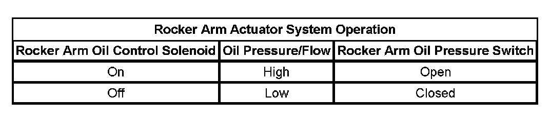 If there is an open or short in the rocker arm oil control solenoid or the solenoid electrical circuit, DTC P2648 or DTC P2649 sets. If the rocker arm oil pressure switch detects oil pressure when there should be no pressure, DTC P2647 sets. If the rocker arm oil pressure switch detects no oil pressure when there should be pressure, DTC P2646 sets.