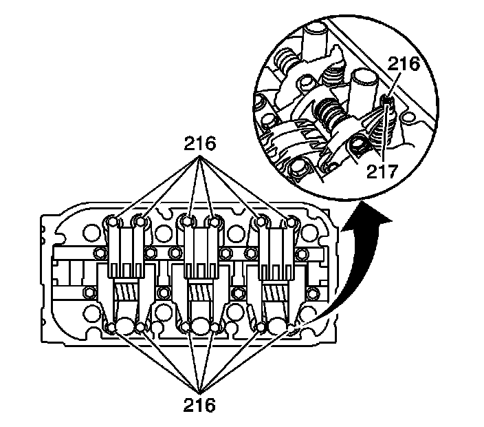 10. Note the installed location of the exhaust valve rocker arms (2).