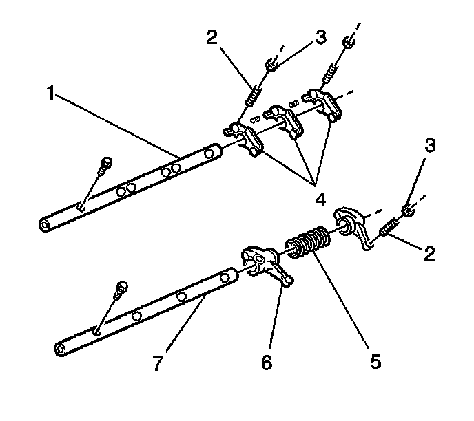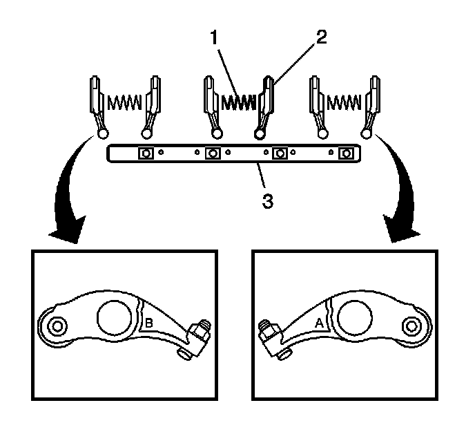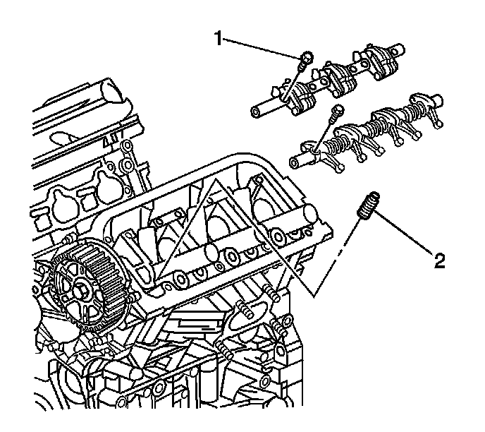 1. Important: Identify parts as they are removed so they can be installed in their original locations if used again. When removing or installing the rocker arm shaft assembly, do not remove the rocker arm shaft mounting bolts. The bolts will retain the springs and rocker arms onto the shaft.