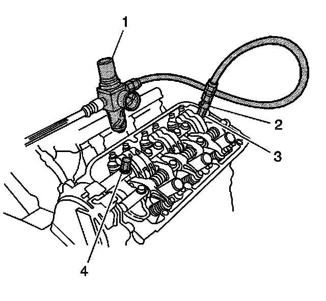 14. Remove the 2 end intake rocker arm shaft mounting bolts and install the EN 46339 (3), EN 46340 (4), EN 46348 (1) and the EN 46352 (2).