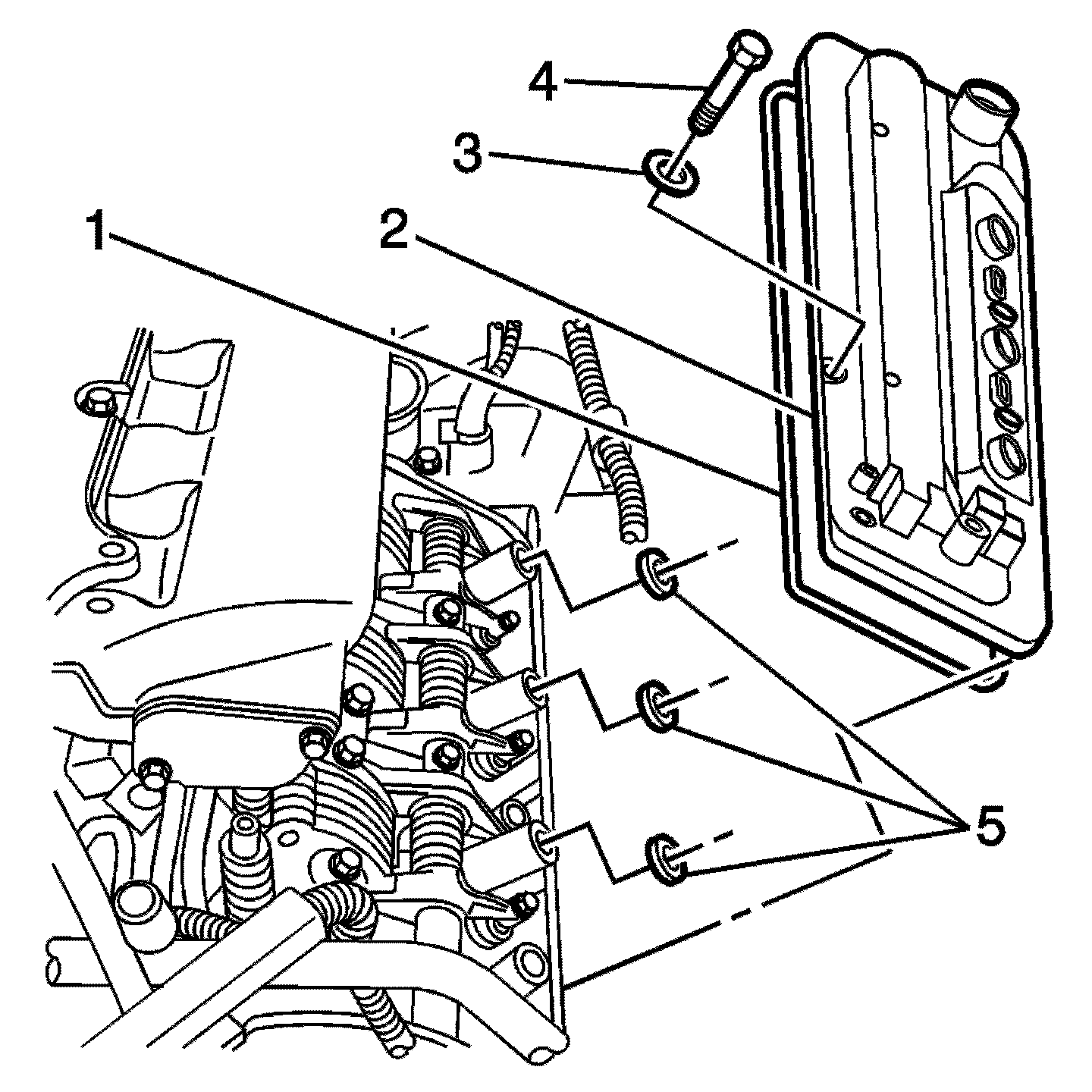1. Remove the left rocker cover (2). Valve Rocker Arm Cover Replacement - Left