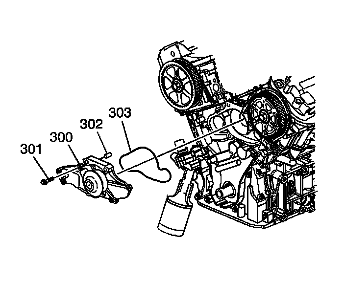 3. Install the water pump (300) with NEW O-ring seal (303).