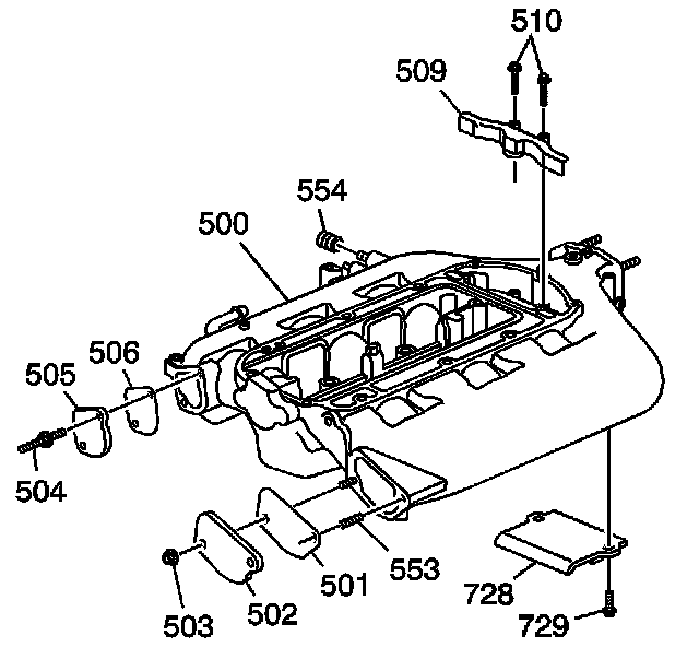 Install the manifold (500), bolts (508) and nuts (507).