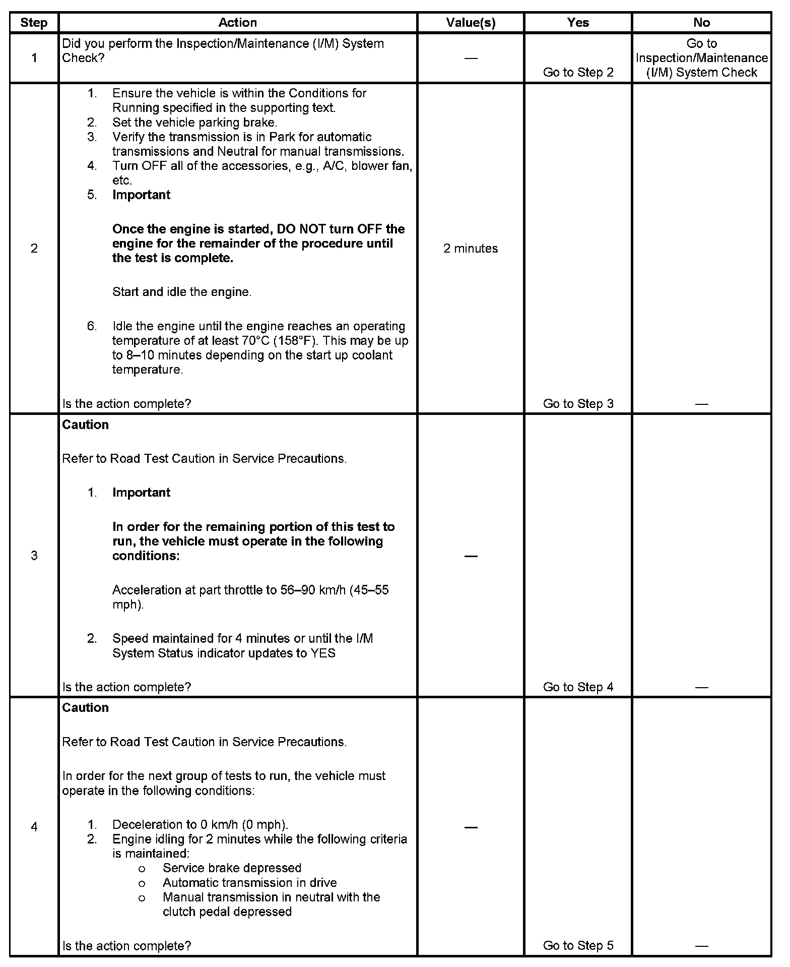1. Make sure you perform the I/M System Check before performing this test. Failure to do so may result in difficulty updating the status to YES. Inspection/Maintenance (I/M) System Check