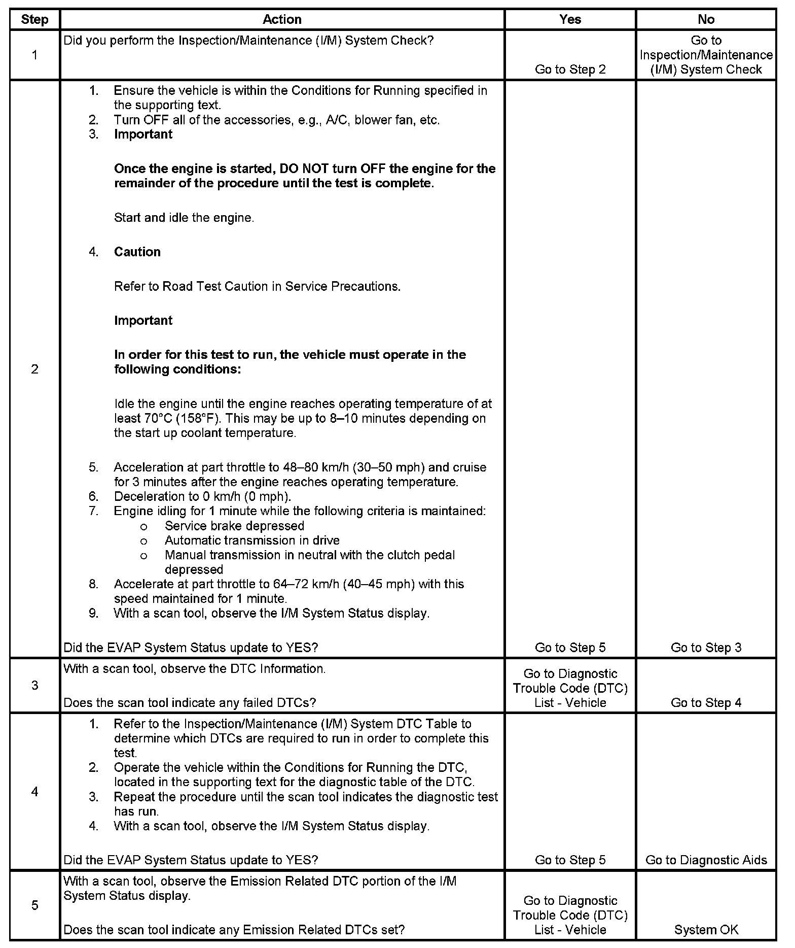 1. Make sure you perform the I/M System Check before performing this test. Failure to do so may result in difficulty updating the status to YES. Inspection/Maintenance (I/M) System Check