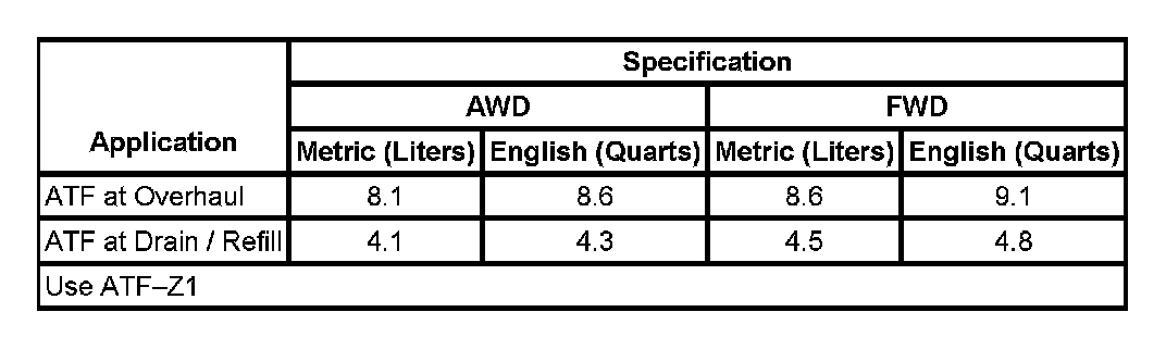 Fluid Capacity Specifications: