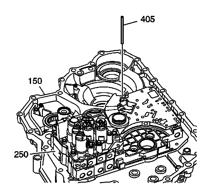 5. Insert the 7 x 71 mm stator shaft stop pin (405) into the hole located in the control valve body assembly (250).
