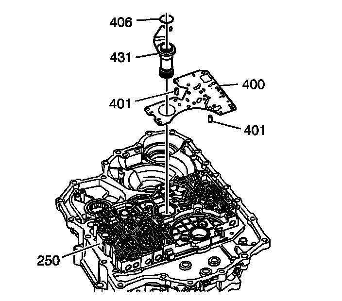 1. Install the spacer plate locating pins (401) into the control valve body assembly (250).