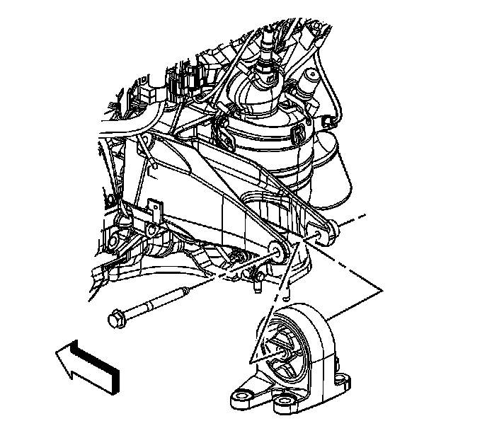 3. Install the transmission mount-to-bracket through bolt, while aligning the transmission mount to the bracket.