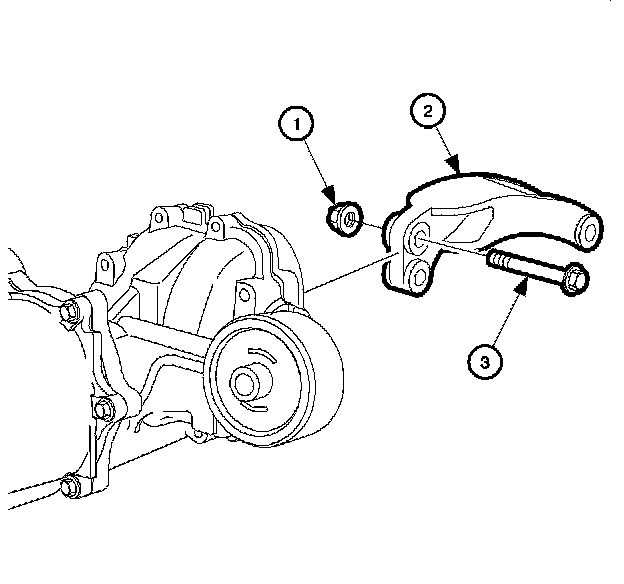 6. Remove the nut (1) and bolt (3) from the mounting RDM mounting bracket (2) and remove the bracket.