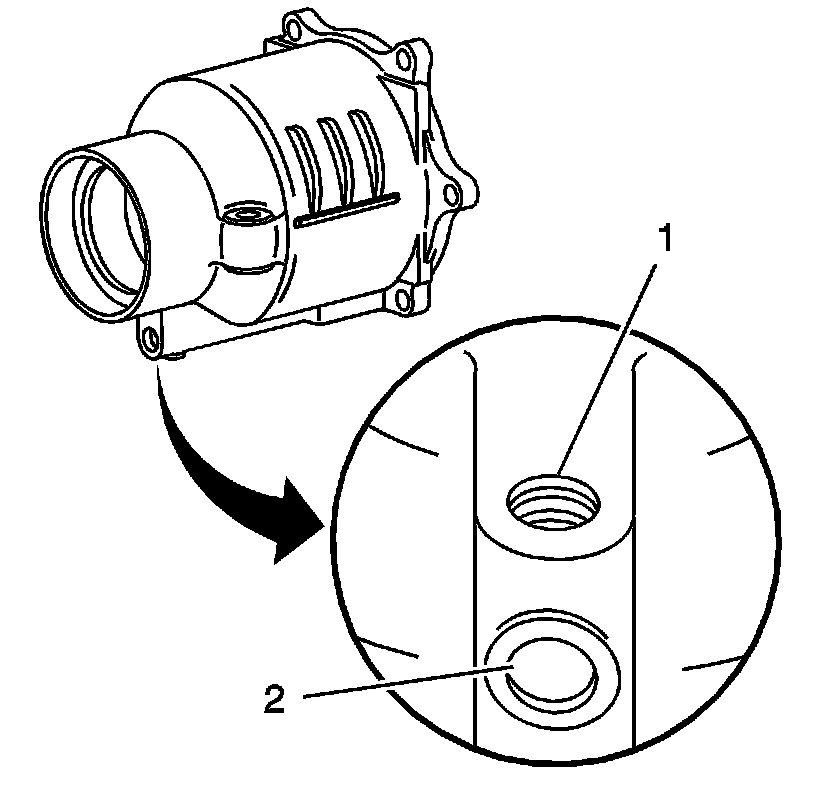 4. Clean and inspect the vent passage (1) and the oil return passage (2).