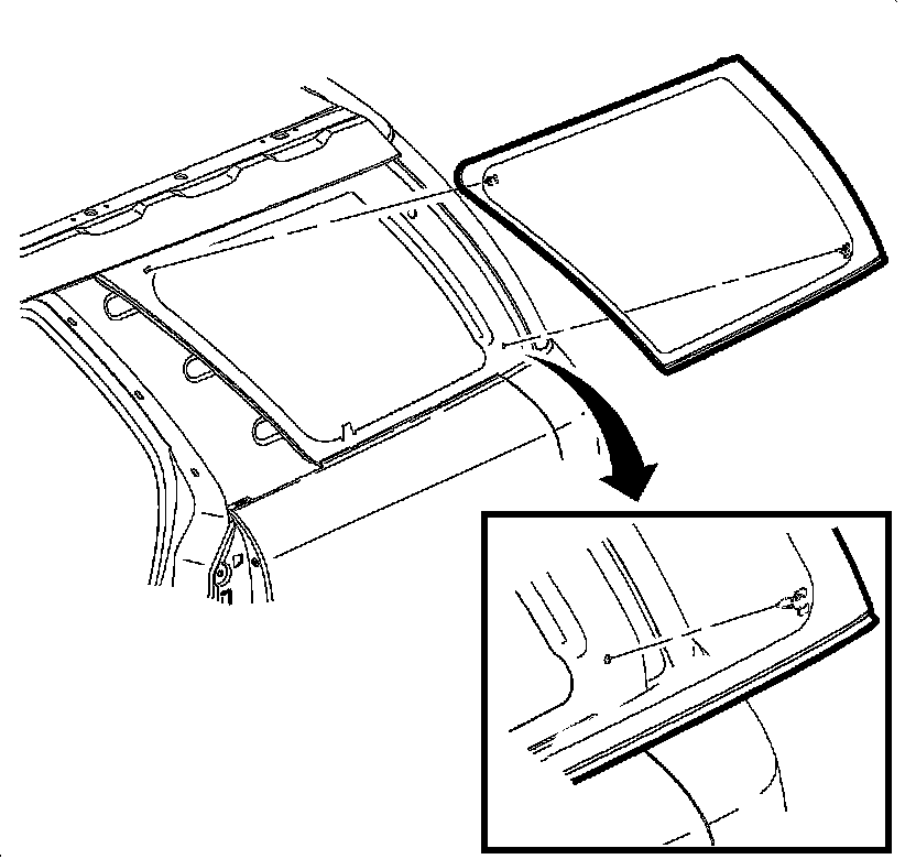 2. Remove the roof rear panel assembly. Refer to Panel Applique Replacement - Roof Rear () in Exterior Trim.