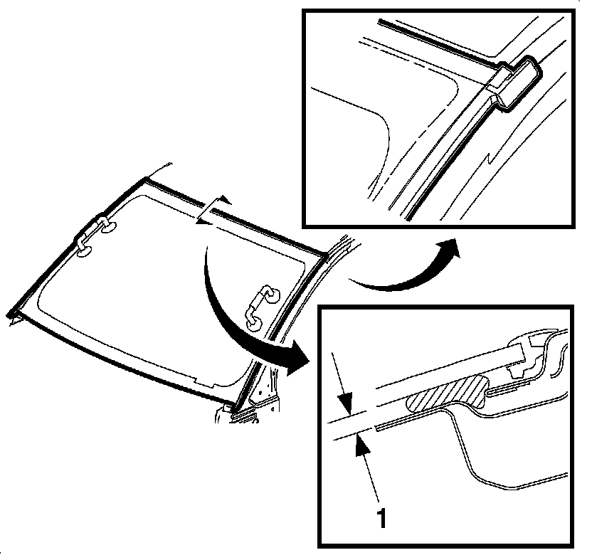 4. Install the windshield frame appliques. Refer to Applique Replacement - Windshield Frame (Applique Replacement - Windshield Frame) and Panel Applique Replacement - Roof Front () in Exterior Trim.