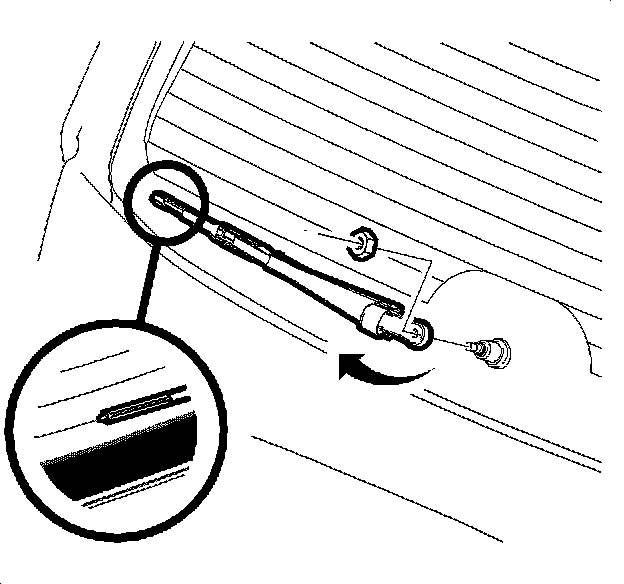 3. Lift the rear wiper arm assembly away from the rear window and remove the wiper arm from the pivot shaft.