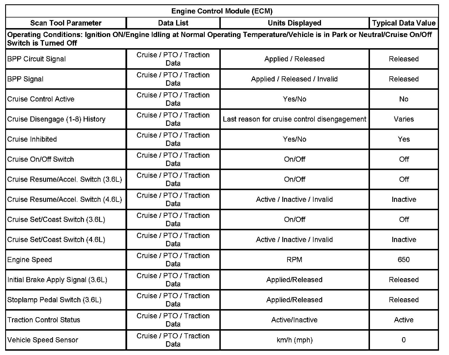 Scan Tool Data List