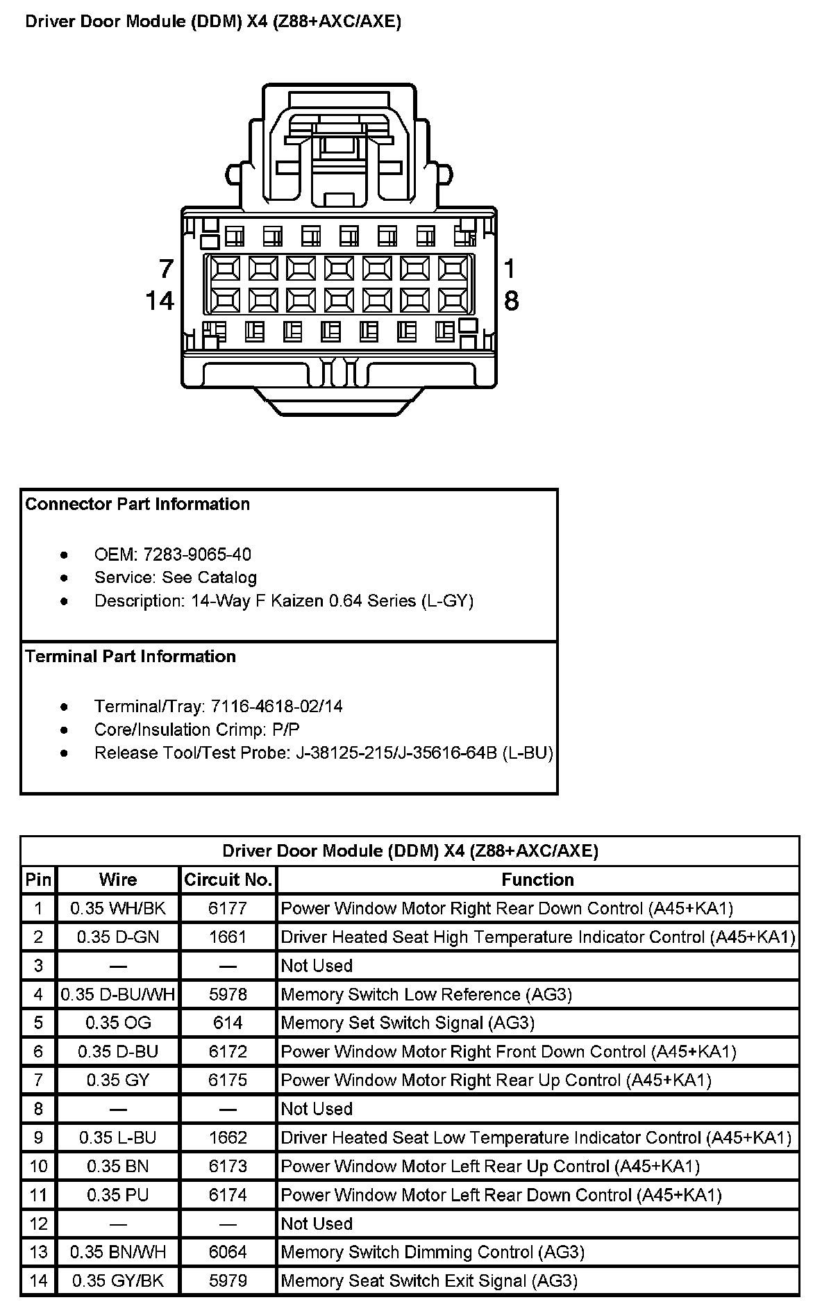 Driver Door Module (DDM) X4 (With RPO Code WDA+AXC / AXE):