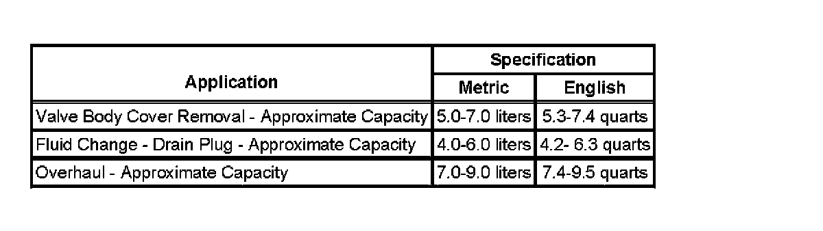 Fluid Capacity Specifications: