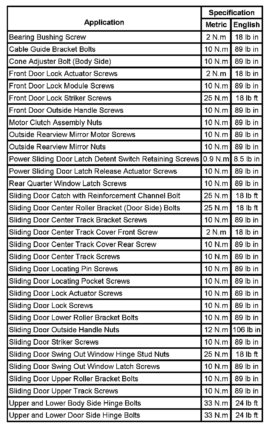 Fastener Tightening Specifications