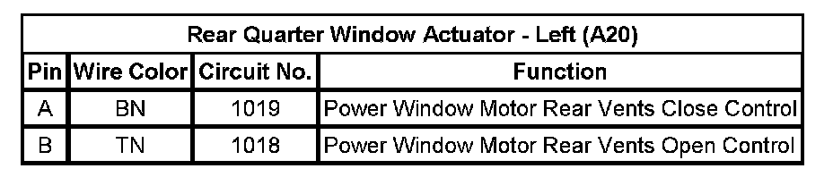 Rear Quarter Window Actuator - Left (A20)