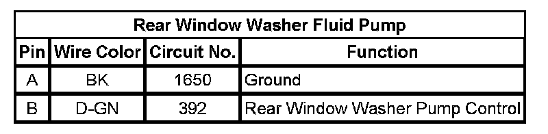 Rear Window Washer Fluid Pump